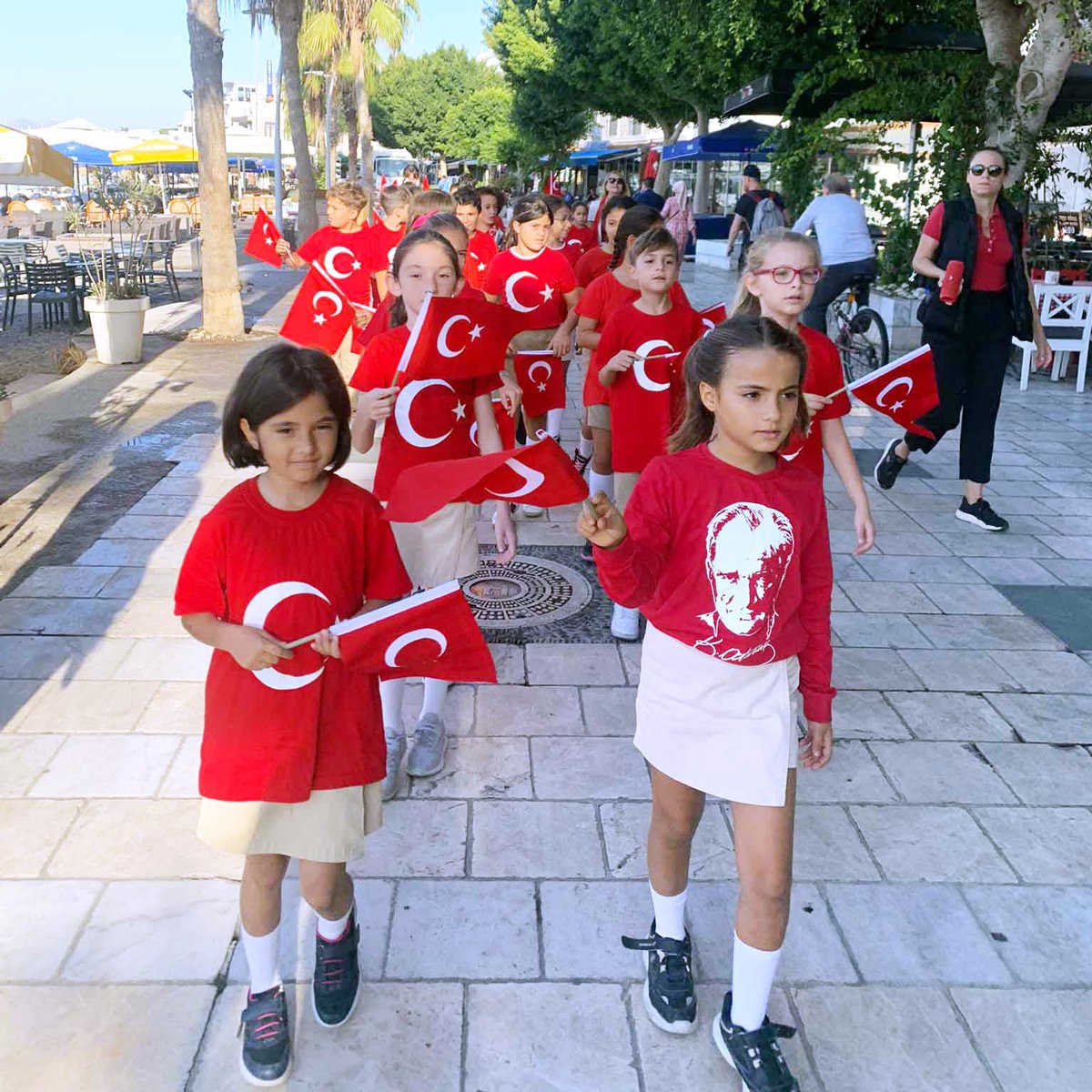 Muğla’nın Bodrum ilçesinde ise Atatürk İlkokulu öğrencileri üzerinde ay yıldızlı bayrak bulunan tişörtler giydi, ellerinde Türk bayrakları ile Cumhuriyet Caddesi’nde yürüyüş yaptı. SÖZCÜ/AA/DHA