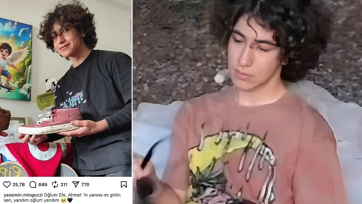Anne Yasemin Minguzzi ise sosyal medya hesabından yaptığı paylaşımda, "Oğlum Efe, Ahmet'in yanına mı gitti sen? Yandım oğlum yandım" dedi.