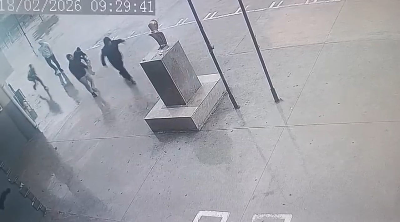 Dört öğrenci, devrilmek üzere olan büstü elleriyle destekleyerek fırtına dinene kadar yerinden oynamasını engelledi. O anlar okulun güvenlik kameralarınca kaydedildi.
