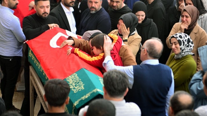 Öğrencilerin yakınları ise Türk bayrağına sarılı tabutlara kapanarak gözyaşı döktü. Çocukların aileleri, yakınları tarafından teselli edilmeye çalışıldı. Ardından cenazeler toprağa verilmek üzere Şeyhadil Mezarlığı’na götürüldü.