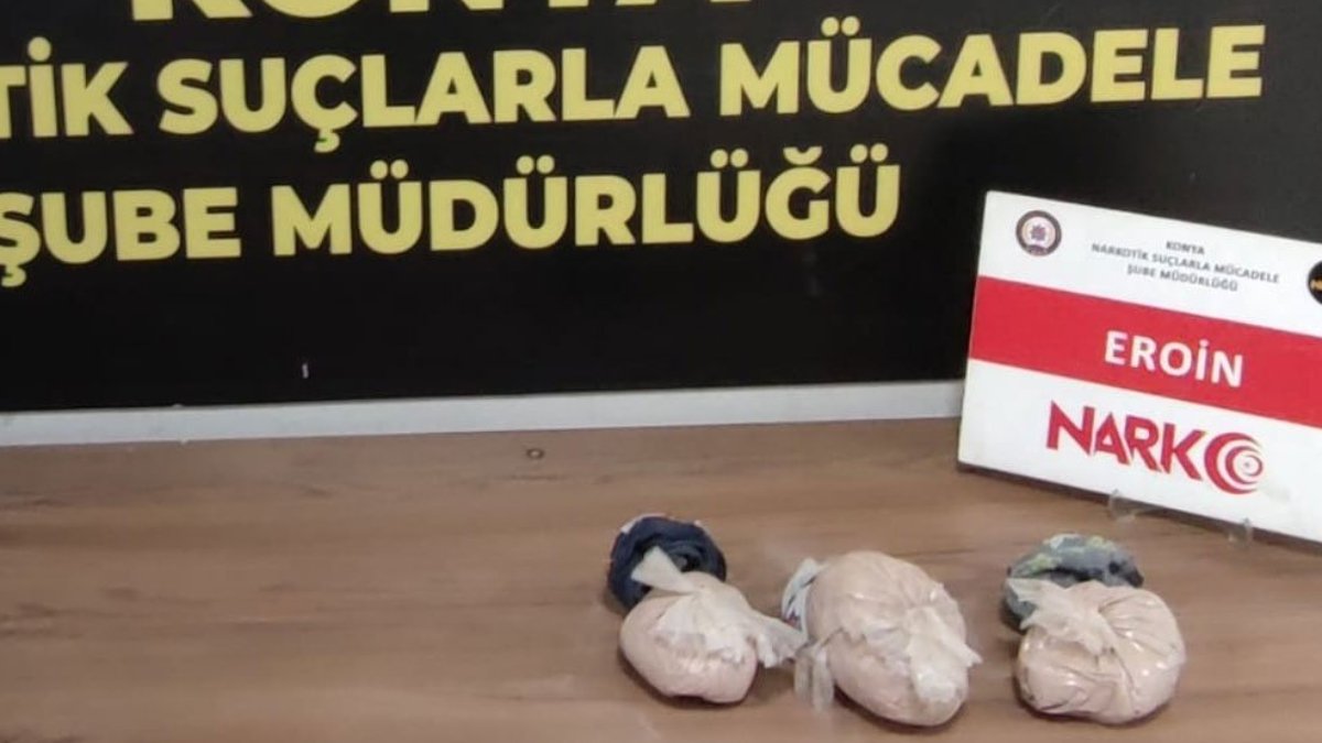 Konya Emniyet Müdürlüğü Narkotik Suçlarla Mücadele Şube Müdürlüğü ekipleri şüphelendikleri 2 şahsın ikametinde arama yaptı. Evde arama yapan ekipler yastık içerisine 3 parça halinde gizlenmiş 1 kg eroine el koydu.