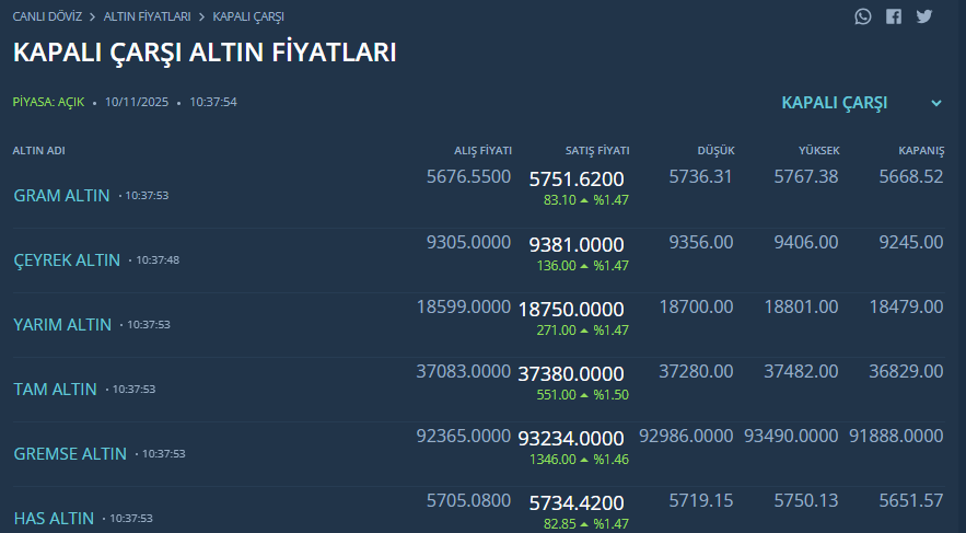 KAPALI ÇARŞI ALTIN FİYATLARI