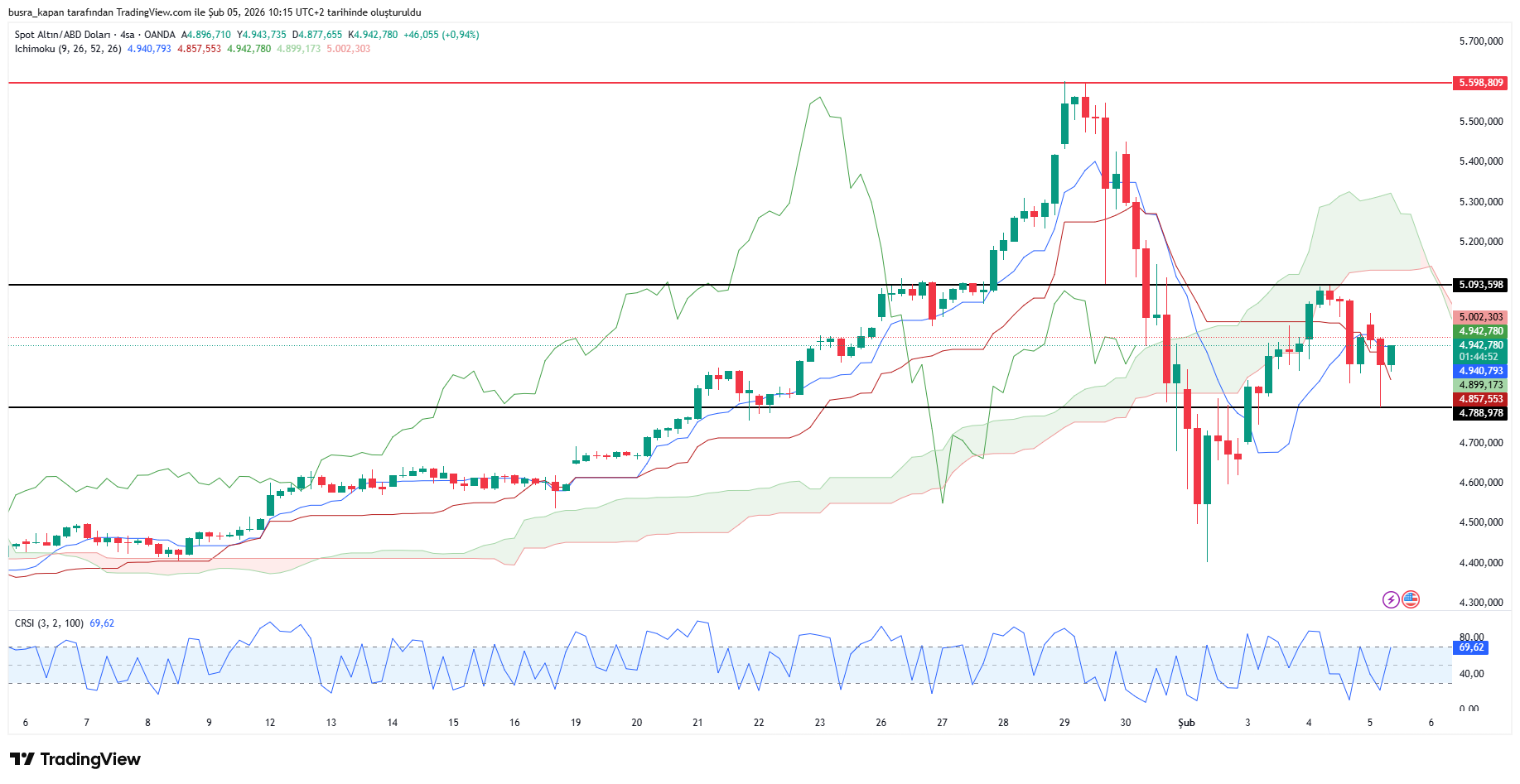Altın fiyatları yeni güne düşüşle başladı. Ons altın dün 5 bin 93 doları gördükten sonra gece seansında sert kayıplar verdi. Ons altın gece 04.00'te 4 bin 788 dolara kadar düştü. Bugün sabah saat 10.42'de 4 bin 898 dolarda hareketleniyor.