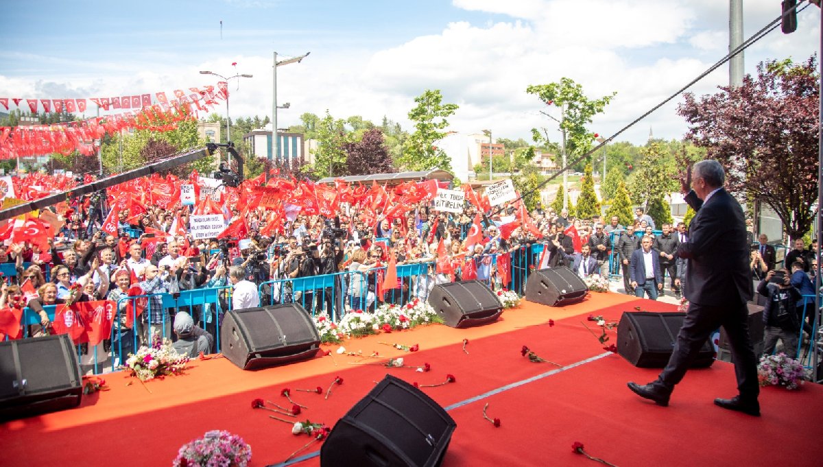 15 Mayıs’tan itibaren her şeyin çok güzel olacağını belirten Mansur Yavaş, “Siz kime akıl veriyorsunuz? Şurada gördüğünüz gençlerin hepsi dünyayı sizden daha iyi okuyor, sizden iyi tanıyor. Sizin onlara nasihat vermenize ihtiyaçları yok. Eğer siz bu dönemi okuyabilseydiniz onların aklından yararlanma yoluna giderdiniz. Saygı duymayı öğreneceksiniz. Kimse kimseye karışamaz. Artık bu dönemin sonu geldi. Karabük’te de görüyoruz, kalabalığın ucu bucağı görünmüyor. Her gittiğimiz yer öyle, büyük bir değişim arzusu var. Sayın Genel Başkanımızı ayın 14’ünde inşallah seçeceğiz. Mazbatayı alır almaz Kızılay’da karşılayacağız ve Külliye’ye değil, Mustafa Kemal Atatürk’ün koltuğuna, Çankaya’ya hep birlikte götüreceğiz. Nasıl Millet İttifakı’nın belediyelerine huzur ve bereket geldiyse ayın 15’inden sonra da güzel ülkeme huzur, bereket, refah gelecek ve her şey çok güzel olacak. Ülkemizin her yerine bahar gelecek” diye konuştu.