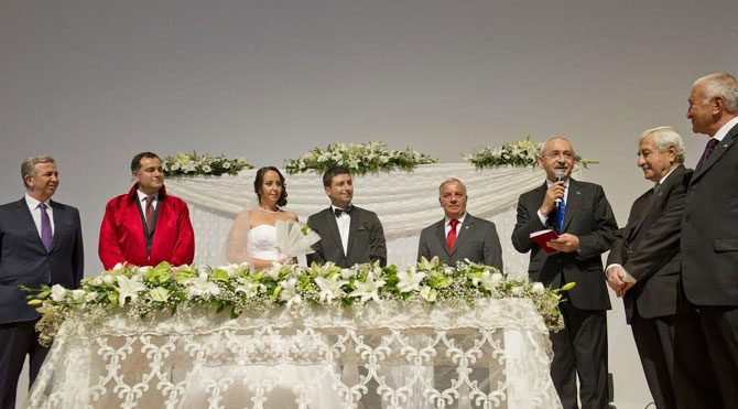 Cumhuriyet Halk Partisi Genel Başkanı Kemal Kılıçdaroğlu, Ankara Büyükşehir Belediye Başkan Adayı Mansur Yavaş'ın kızının nikah törenine katıldı.Çağlayan Yavaş ve Yıldıray Sezgin'in ATO Congressium'da gerçekleşen nikah törenine CHP Parti Meclisi Üyesi Bülent Kuşoğlu da katıldı.