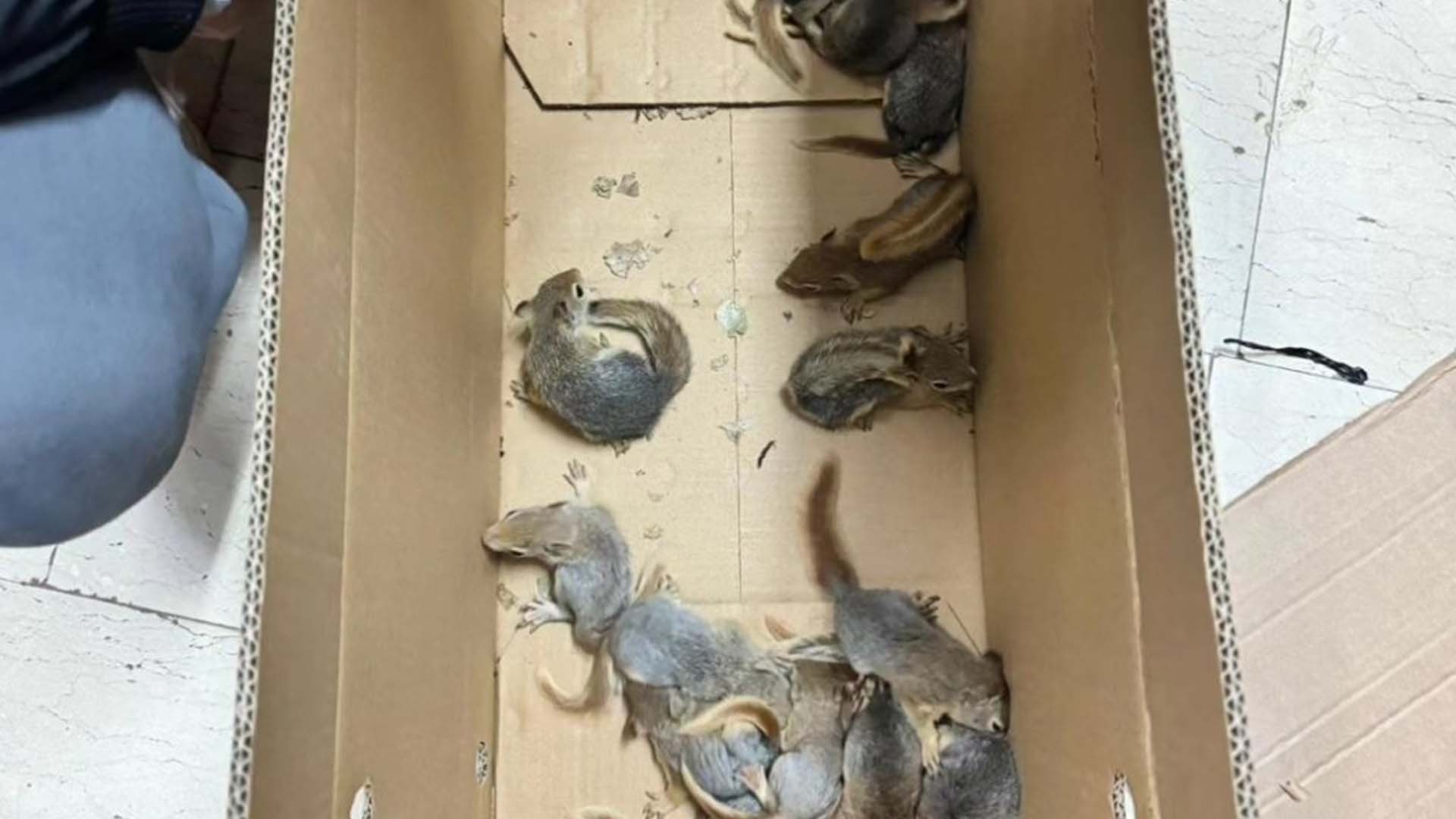 Bazı evlerde yapılan aramada 19 yavru sincap ele geçirildi.