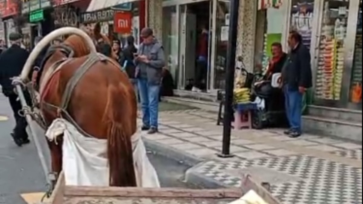 Ekipler, at arabası sahibi E.Ç.’ye ulaşarak ilgili maddeden 993 lira idari para cezası uyguladı. At arabası ise yaya geçidinden kaldırıldı.