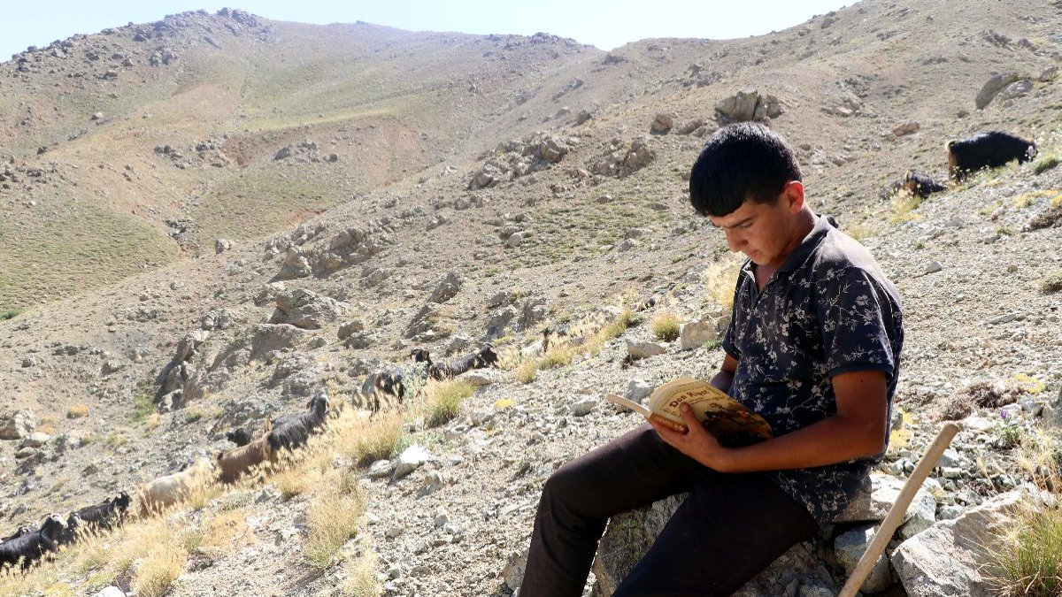 Fotoğraf: AAYazar, "Hayvanlarımı otlaklık alana saldıktan sonra kendi başlarına otluyorlar. Ben de bir taşın altında gölgelik alana geçtikten sonra ders çalışıyordum. Bu imkanlarda çalıştım. Arıcak'ta etüt merkezi, dershane yok. Bu hayatı, bu zorluğu gördüğüm için tek çarem okumaktı. O yüzden çok çalıştım." dedi.