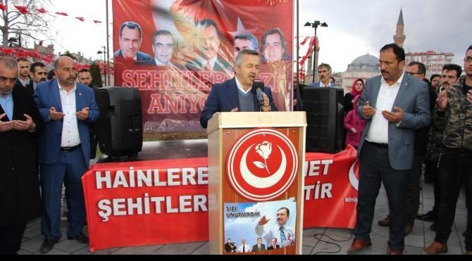 SİVAS'ta Büyük Birlik Partisi'nin (BBP) Kurucu Genel Başkanı merhum Muhsin Yazıcıoğlu ve yol arkadaşları, vefatlarının 8'inci yılında kent meydanında dualarla anıldı.