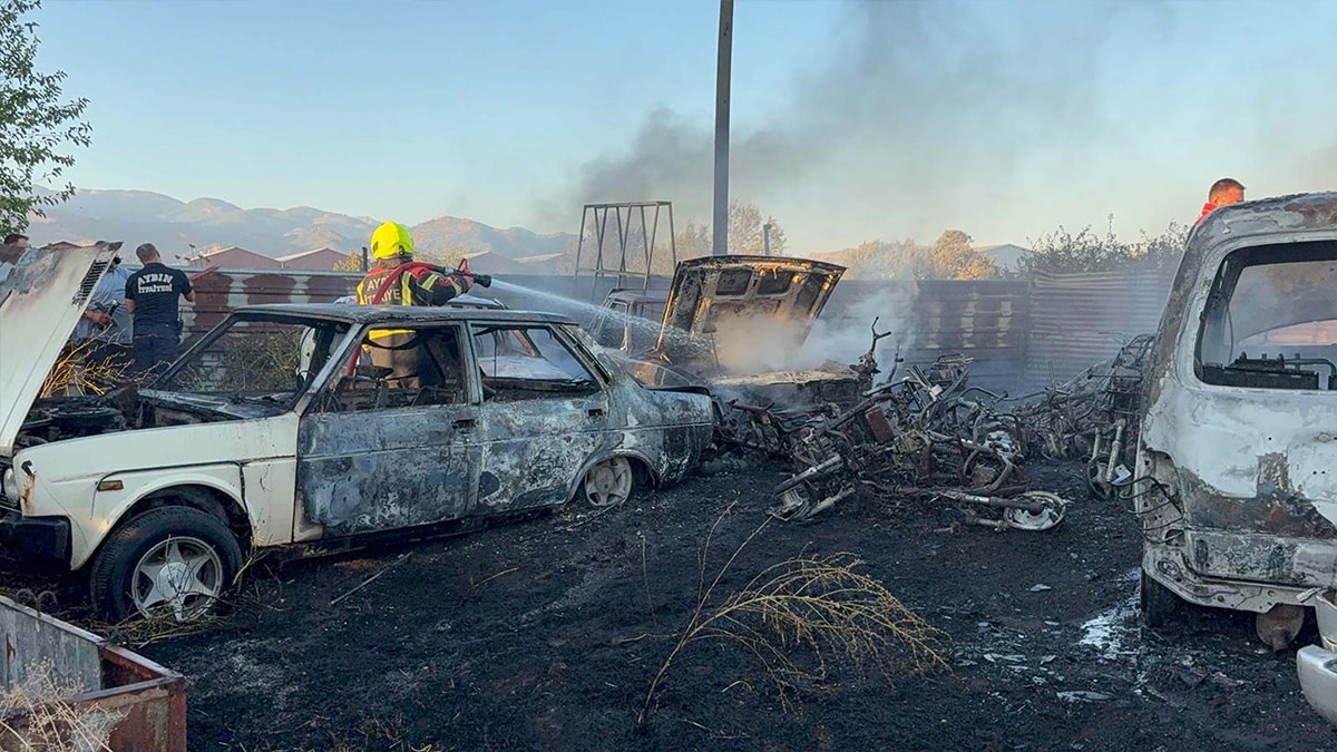 Aydın'da, yediemin deposunda çıkan yangında hurda 5 otomobil ve 30 motosiklet, kullanılmaz hale geldi.
