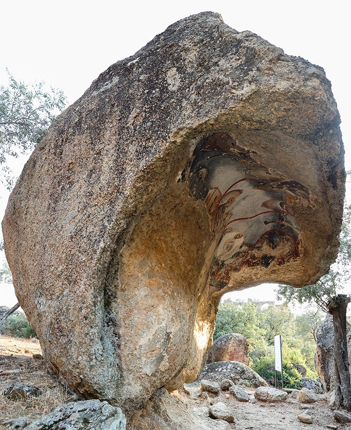 Taş duvarlı burçları, kemerleri ve inziva odalarıyla dikkat çeken manastırın en ilgi gören yeri ise mantar biçimindeki kayanın altında yer alan freskler.