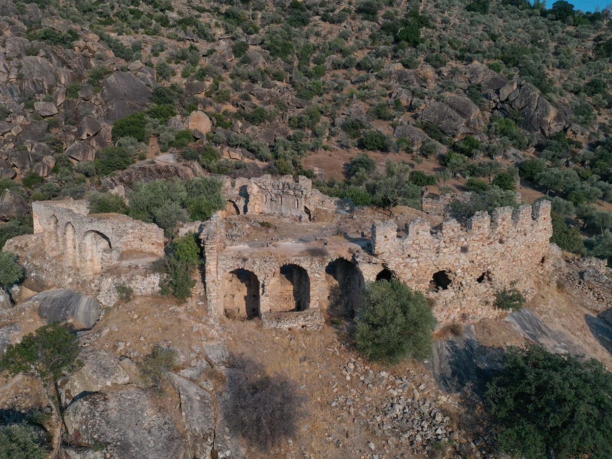 Aile yürüyüşleri için uygun olan rotanın sonunda Bafa Gölü manzarasına hakim bir vadide kayaların üzerine kurulmuş manastır kalıntıları ziyaretçileri karşılıyor.