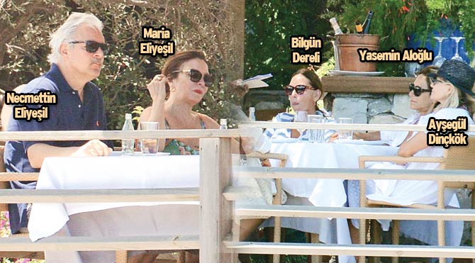 Cemiyet yaşamının tanınmış isimlerinden Necmettin-Maria Eliyeşil çifti, Yasemin Aloğlu, Bilgün Dereli ve Ayşegül Dinçkök önceki gün öğle yemeğini Maça Kızı Otel’de yediler. Ayrı ayrı masalarda yemek yerken görüntülenen cemiyet hayatının ünlü isimlerinin keyfi hayli yerindeydi.