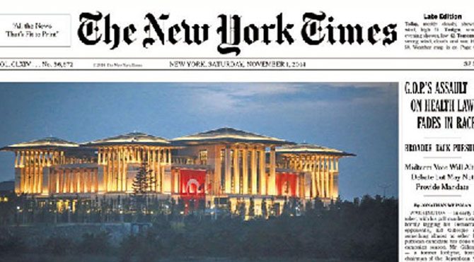 “Türk lider, çatışmaları kullanarak gücünü pekiştiriyor” başlıklı haberde, yaklaşık 350 milyon dolarlık bir maliyet ile Ankara’da inşa edilen yeni Cumhurbaşkanlığı Sarayı’nın, Cumhurbaşkanı Tayyip Erdoğan’ı eleştirenler için güçlü bir sembol haline geldiği kaydedildi.