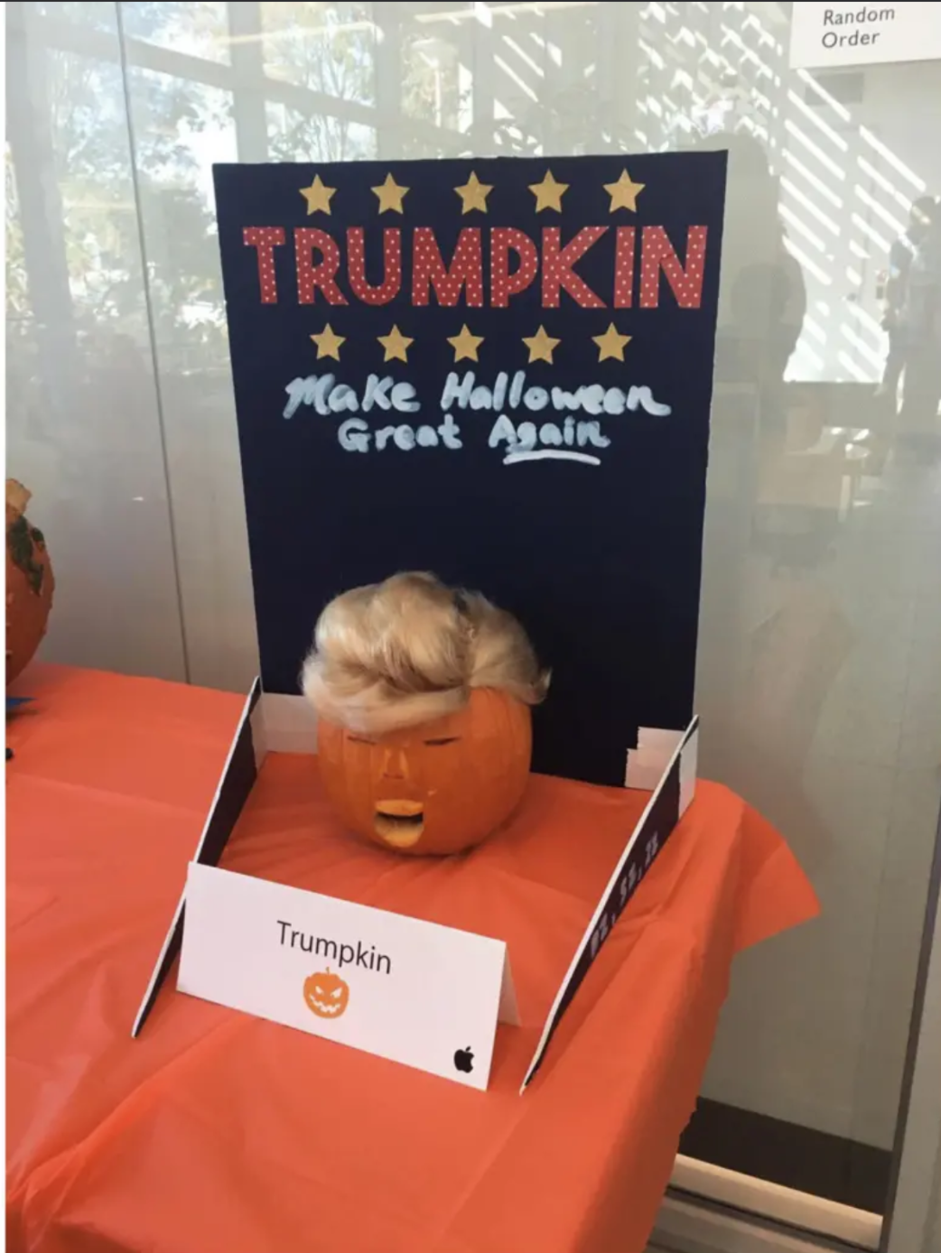 Bununla birlikte 'Trumpkabağı' da dikkat çekti. Trump'ın 'turuncu' olarak tasvir edilen deri rengine gönderme olduğu tahmin edilen Trump şeklindeki balkabağı, fotoğraflarda görüldü.