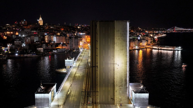 İstanbul’da Yeni Galata Köprüsü’nde gece saatlerinde bakım ve onarım çalışması gerçekleştirildi.