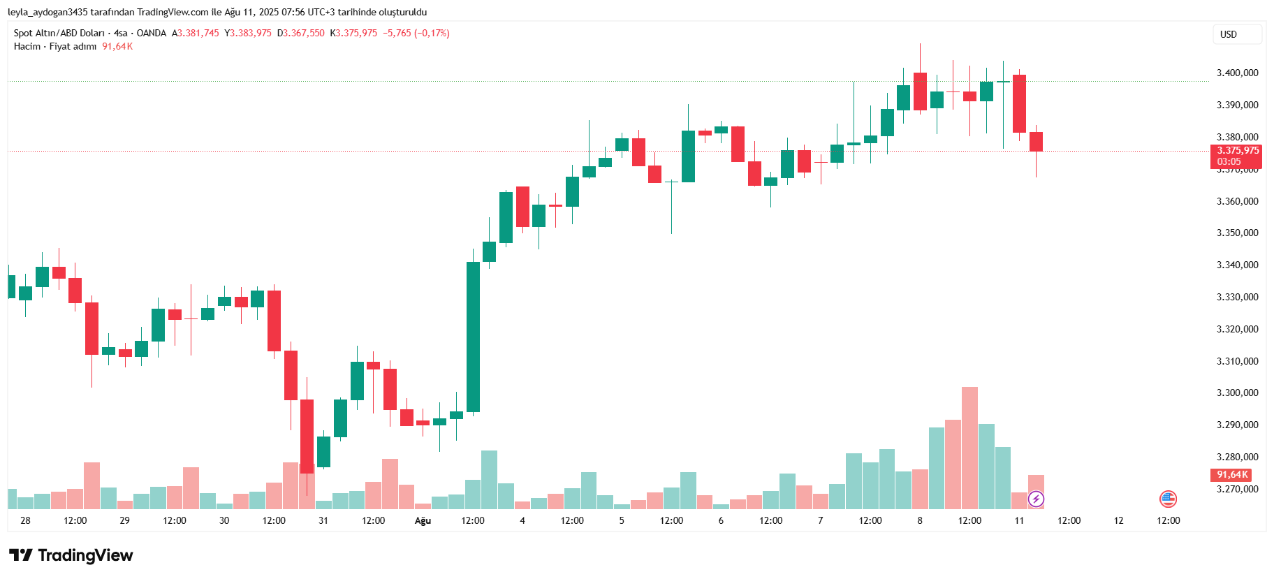 Spot altın yüzde 0,7 değer kaybederek ons başına 3.376,67 dolara indi. Cuma günü 23 Temmuz’dan bu yana en yüksek seviyesini gören altın, haftaya satışla başladı. ABD vadeli altın kontratları da yüzde 1,5 düşüşle 3.439,70 dolara geriledi.
