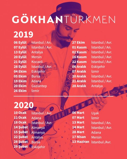 Yaz sezonunun ardından 6 Eylül’de hayranlarıyla buluşacak olan Gökhan Türkmen'in 2019-2020 konser takvimi açıklandı. Sanatçı, bu yıl İstanbul, Antalya, Mersin, Kocaeli, Eskişehir, Bursa, Adana, Antep, İzmir, Uşak, Mersindışında Trabzon, Rize, Samsun, Konya, Kayseri, Isparta, Denizli, Mardin gibi şehirleri de ekleyerek Karadeniz, Doğu Anadolu da dahil olmak üzere Türkiye’nin her yerinde hayranlarıyla bir araya gelmek için hazırlanıyor.