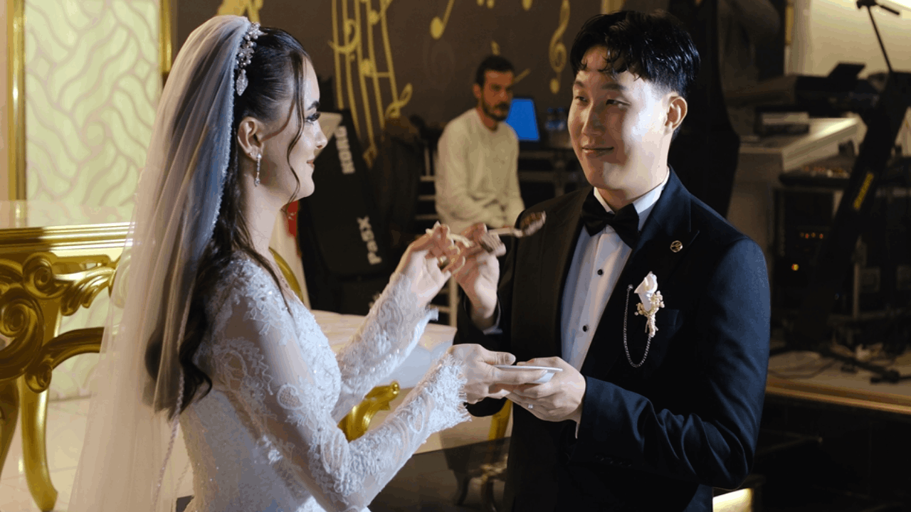 Kore’de düğün kültürü olmadığını ancak çok mutlu olduğunu söyleyen damat Kim, “Kore'de kesinlikle böyle bir şey yok, yani çok kısa süren bir düğün gelenekleri var. Bu yüzden şu anda çok heyecanlıyım ve çok eğlenceli bir kültür. Ülkeler, şehirler hiçbir şekilde önemli değil, yani. Ruh eşini bulunca bu iş oluyor diye konuştu.