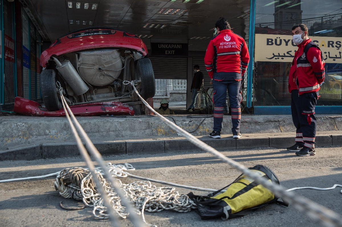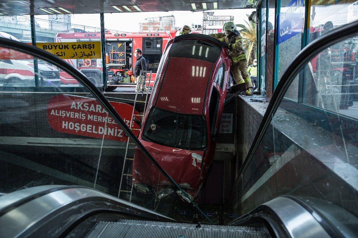 Çarpmanın etkisiyle otomobil sürücüsü Yağmur direksiyon hakimiyetini kaybederek yeraltı çarşısının camından aşağıya düştü. Kazada otomobilde bulunan şoför Süleyman Yağmur ve ismi öğrenilemeyen bir kişi hafif yaralandı. İhbar üzerine olay yerine ekipler sevk edildi.
