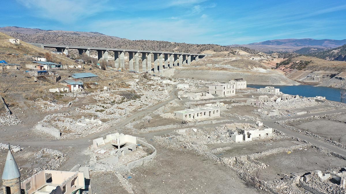 Son günlerde baraj kapaklarının kısmen açılmasıyla su seviyesi düşünce köydeki evler, cami, kilise ve çeşitli tarihi binaların kalıntıları tekrar görünür hale geldi.