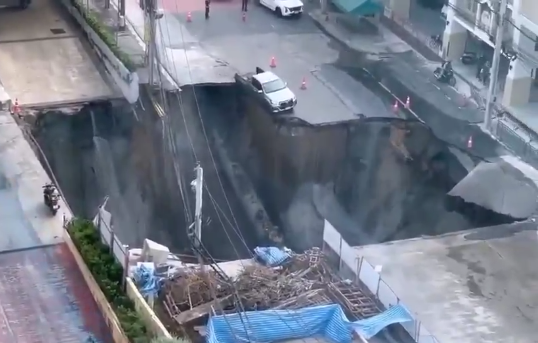 Bangkok’ta Çarşamba günü bir yolun bir bölümü çöktü. Sokağın ortaasında yer yarılınca, araçlar ve hatta binalar içine girdi.
