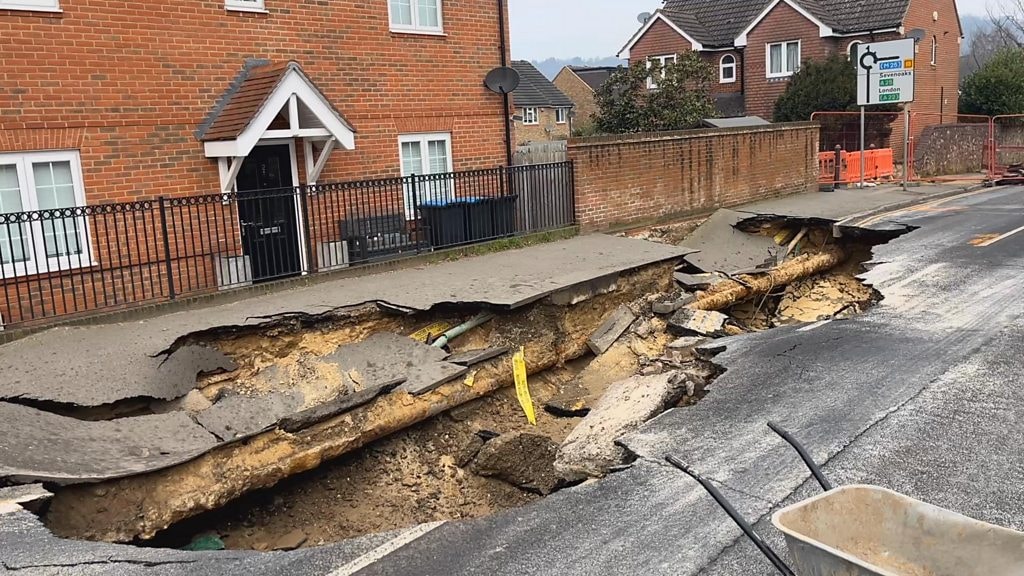 İngiltere’nin Surrey bölgesindeki Godstone High Street’te, ilk olarak pazartesi günü meydana gelen büyük bir obruğun ardından çarşamba günü ikinci bir çökme daha yaşandı.