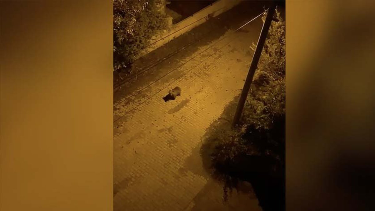 Bolu'da yerleşim yerine inen ayı, güvenlik kamerasınca kaydedildi.