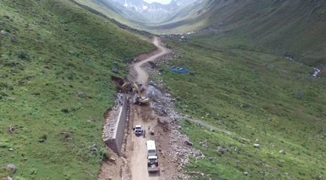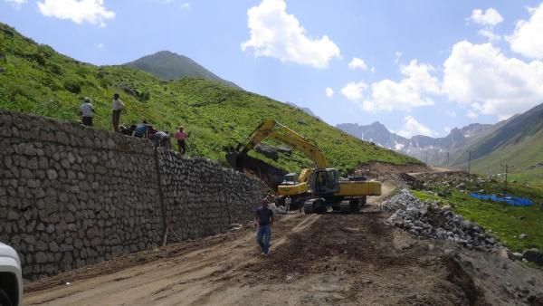 Kaçkar dağlarının karlı yamaçlarının eteğinde yer alan yeşilliğiyle görenleri büyülüyen ve bir süre önce yapılan eylemylerle yapımına ara verilen yayladaki mevcut yayla yollarının genişletilmesi çalışmalarına yeniden başlandı.