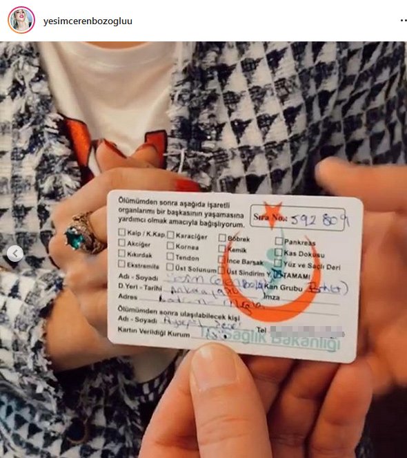 Yeşim Ceren Bozoğlu, özel bir hastanenin düzenlediği organ nakli konusundaki farkındalık etkinliğine katıldı. Organ bağışında bulunmanın hayatta en çok yapmak istediği şey olduğunu söyleyen Yeşim Ceren Bozoğlu, bağışın kendisi için çok özel ve anlamlı olduğunu belirterek şunları söyledi: "Şans Ver projesi kapsamında ben de organlarımı bağışlamış olacağım. O yüzden heyecanlı ve mutluyum. Tüm organlarımı bağışlayacağım ama bugün düzenlenen etkinlikte sevgili doktorumuz Prof. Dr. Ayhan Dinçkan ve ekip arkadaşlarından organ bağışı ile alakalı önemli bilgiler de öğrendik. Ülkemizde çok fazla organ bekleyen hasta var. Türk insanının yardımsever ve iyi kalpli özelliği ile organ bağışını herkes yapabiliyor ve bağış kartını alabiliyor. Ama öğrendiğimiz üzere organ bağışında asıl mesele, vasiyet meselesi. Vefat durumundan sonra ailenin onayı yoksa, organ bağışı kartının bulunması bir şey ifade etmiyor. O yüzden bugün burada Şans Ver Projesi´ne dikkat çekerek 'Organlarını bağışla ama vasiyetini de ailene onaylat' diyoruz."