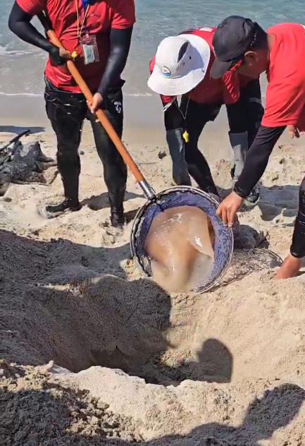 Bu işlem ilk bakışta ürkütücü gelse de arkasında önemli nedenler yatıyor. Nomura denizanaları yüzde 95'i sudan oluşan canlılardır. Bu da güneş altında hızlı biçimde bozulmalarına neden oluyor. Çevreye yayılan kötü koku da bu sebeple kısa sürede ortamı sarıyor. Ayrıca bu canlılar öldüklerinde bile dokunaçlarındaki zehir aktif kalabiliyor. Bu da yüzmeye gelen vatandaşların ciddi şekilde yaralanmasına neden oluyor.