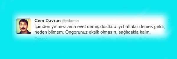 Anayasanın değiştirilmesi için yapılan referandum zamanında ortaya çıkan 'yetmez ama evet' akımına pek çok ünlü isim destek vermişti. Ancak üzerinden bir hayli zaman geçmesine rağmen ülkenin siyasi ve sosyal hayatında iyileşme yerine daha büyük sıkıntıların baş göstermesi sonrasında insanlar seslerini yükseltmeye başladı. Durumun kötüye gittiğini gören Cem Davran da twitter hesabından ince bir göndermede bulunmuş. İşte o tweet;