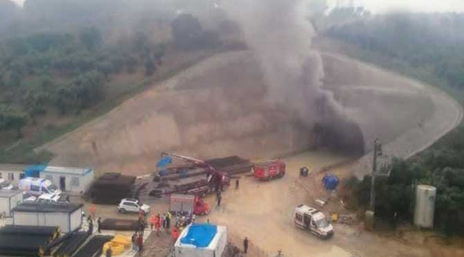 Yüksek Hızlı Tren İnşaatı'nın Bursa'nın Demirtaş Mevkii'nde bulunan ve yaklaşık 500 metre uzunluğunda olan tünelde, bu sabah saat 08.30 sıralarında, monte edilen izalasyonlardan yangın çıktı. Yangını fark eden işçiler kısa süreden tünelden dışarı çıkartıldı. Haber verilmesi sonucu büyükşehir belediyesine ait 7 itfaiye, 112 Acil Servis'in 3 ambulansı ve çok sayıda polis ekibi olay yerine yönlendirildi. Tünel içersinde su birikintisi ve çamur olduğunu öğrenen itfaiye ekipleri, izalasyon maddelerinin yanarak sönmesi için tünel çevresinde beklemeye başladılar.