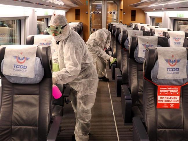 Corona virüsü tedbirleri nedeniyle ara verilen Yüksek Hızlı Tren (YHT) seferleri, bugün Ankara-İstanbul seferi ile başlatılacak. Sefer öncesi gar ve trenlerde corona virüsü salgınına karşı temizlik ve dezenfekte çalışmaları yapıldı.