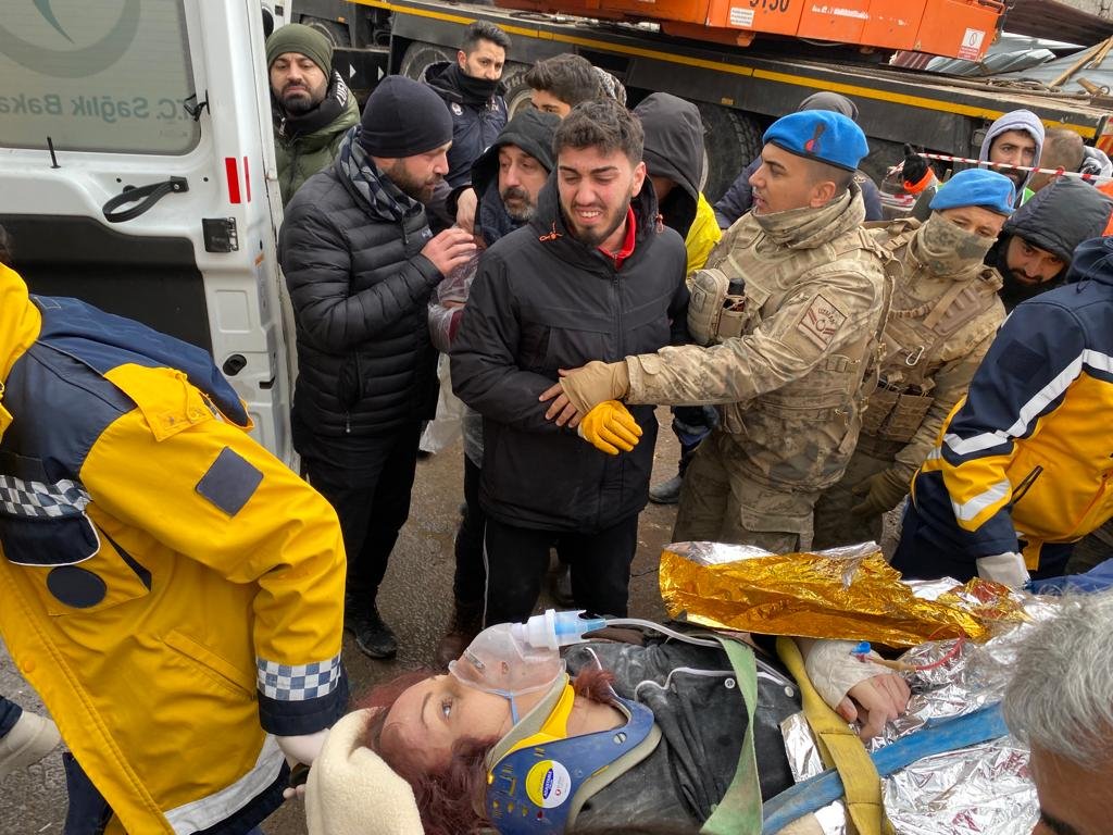 Kahramanmaraş merkezli depremlerde Diyarbakır'da yıkılan binanın enkazından, arama kurtarma çalışmaları sonucu yaklaşık 31 saat sonra 1 kadın yaralı olarak çıkarıldı.