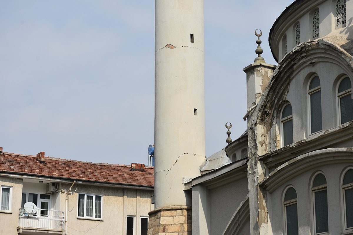 Artçı depremlerde cami minaresinin çökme ihtimaline karşın polis ekipleri cami çevresinde bulunan 2 sokağı trafiğe kapattı.