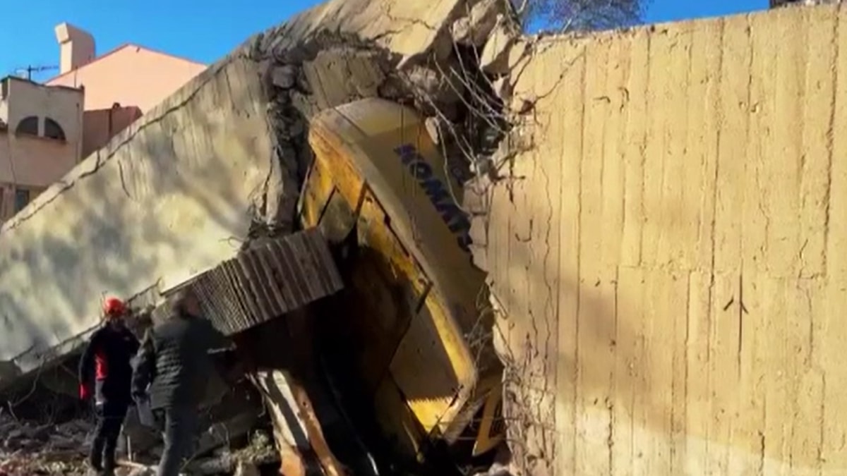 Bir iş makinesi operatörüyle birlikte yapının çöken kısmının enkazında kaldı.