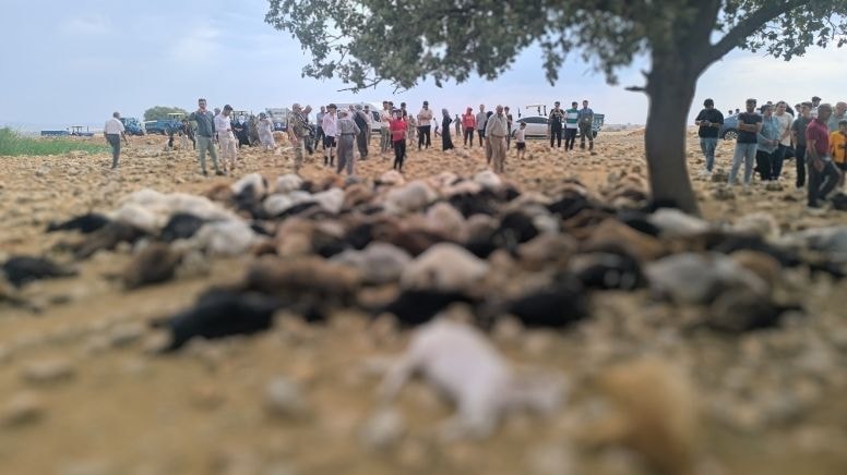Köye yakın bölgeye düşen yıldırımın isabet ettiği sürüdeki 95 küçükbaş hayvan öldü.
