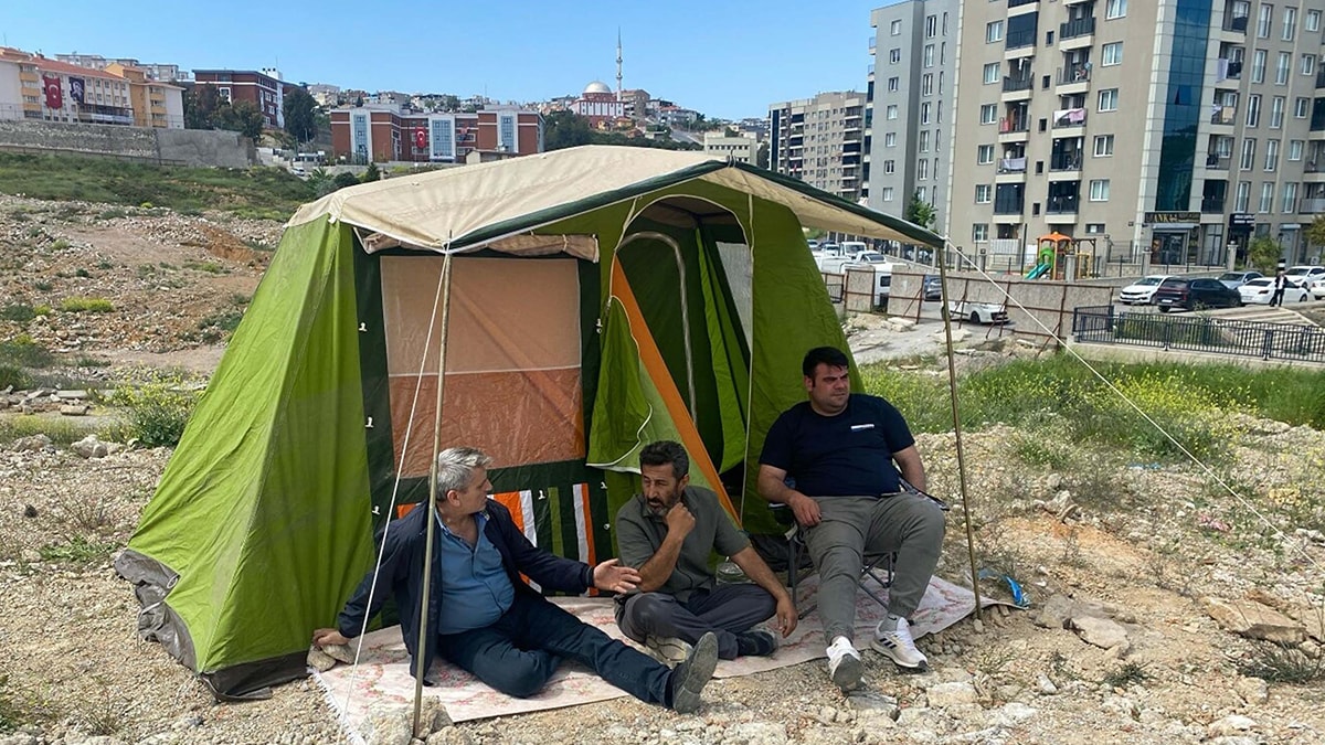 İzmir'in Karabağlar ilçesinde, 15 yıldır kentsel dönüşüm beklediklerini belirten hak sahipleri, tapulu arazilerine çadır kurdu. Uzundere Kentsel Dönüşüm Platform Sözcüsü Eray Uslu, "Evlerimiz yıkıldı ancak sözde örnek proje 15 yıldır tamamlanamadı. İnşaatlar durdu, süreç askıda kaldı. Hak sahiplerinin çilesi ise bitmek bilmiyor" dedi.