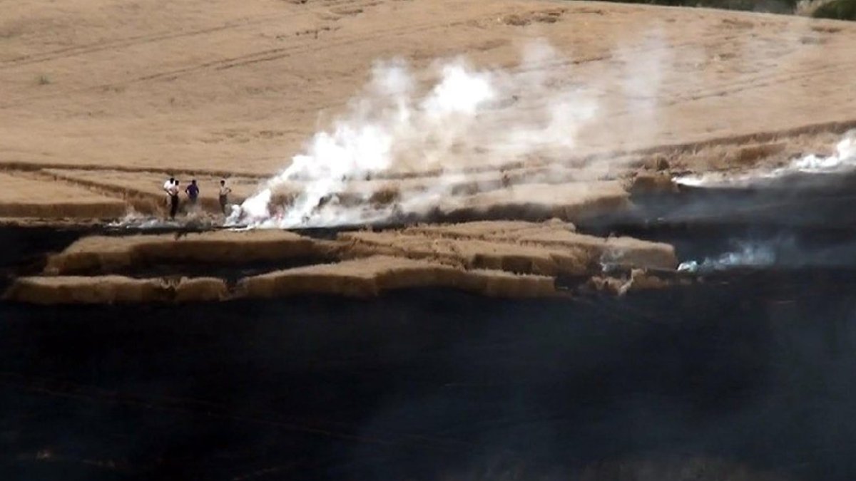 Yangında yaklaşık 20 dönüm ekili arazide zarar meydana geldi. (AA)