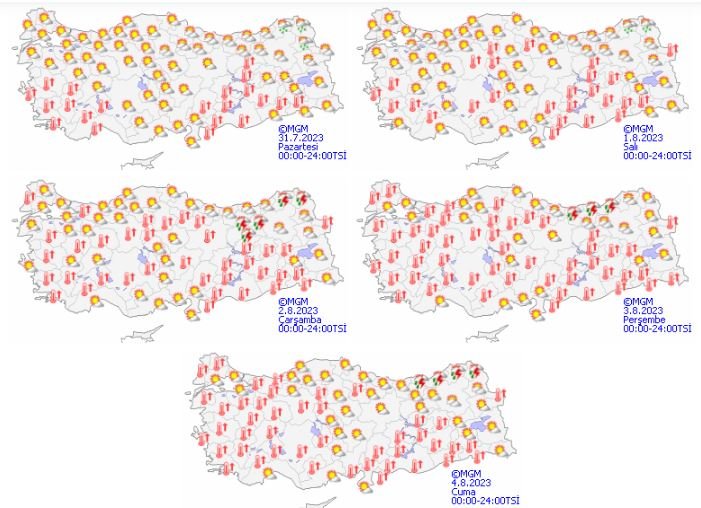 Meteoroloji Genel Müdürlüğü tarafından yapılan son değerlendirmelere göre: Ülkemizin kuzeydoğu kesimlerinin parçalı, yer yer çok bulutlu, öğle saatlerinden sonra Ardahan ve Kars çevreleri, Rize ve Artvin'in iç ve yüksek kesimlerinin yerel sağanak ve gök gürültülü sağanak yağışlı, diğer yerlerin az bulutlu ve açık geçeceği tahmin ediliyor.