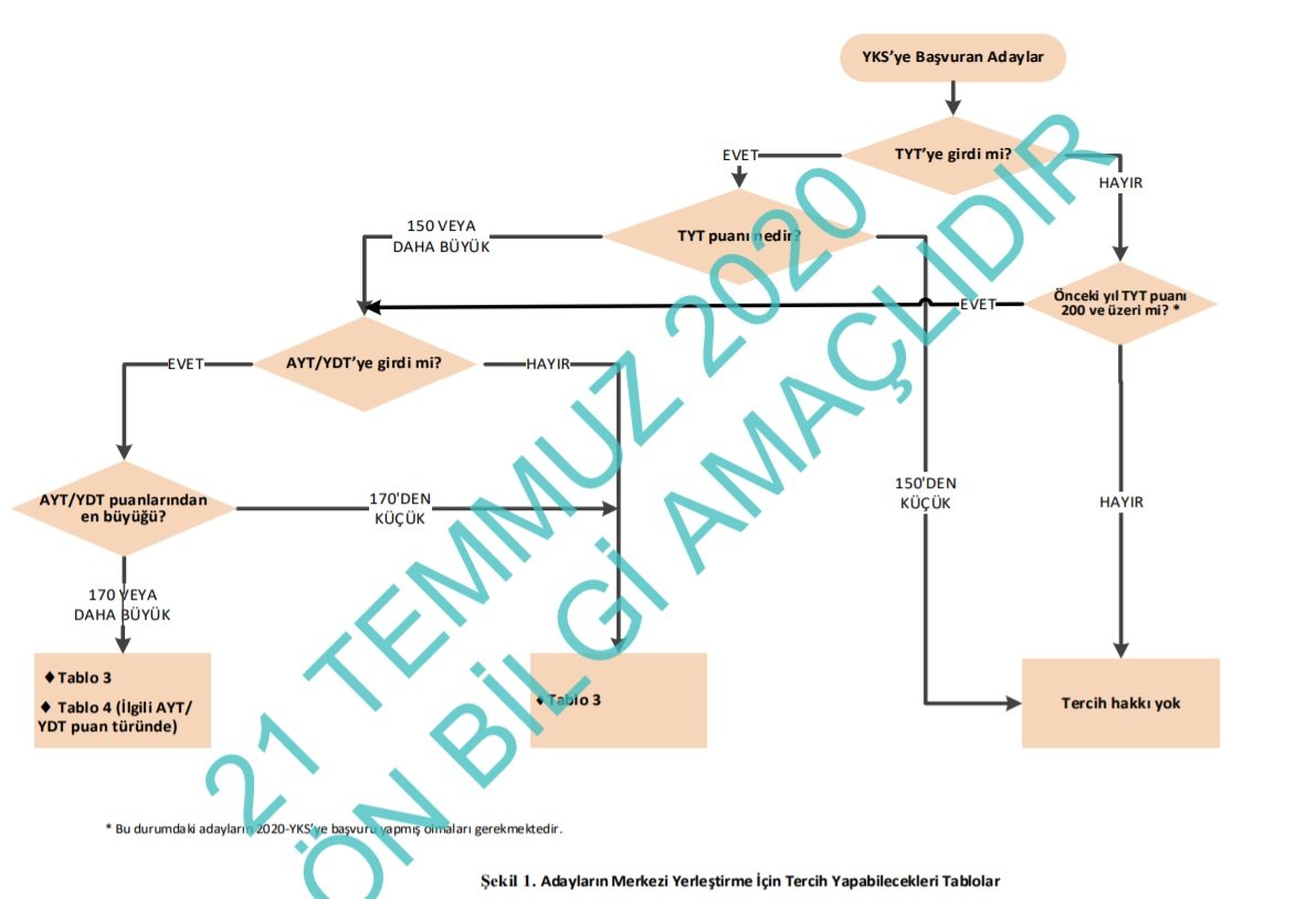 Adaylar, 2020-YKS Yükseköğretim Programları ve Kontenjanları Kılavuzuna tercih süresi içinde ÖSYM’nin http://www.osym.gov.tr internet adresinden erişebileceklerdir. Kılavuz dağıtımı ve satışı yapılmayacaktır. Adaylar tercihlerini, T.C. Kimlik Numarası ve şifre ile tercih süresi içinde ÖSYM'nin https://ais.osym.gov.tr internet adresinden bireysel olarak yapacaklar ve tercihlerini, internet üzerinden elektronik ortamda göndererek tercih bildirimini