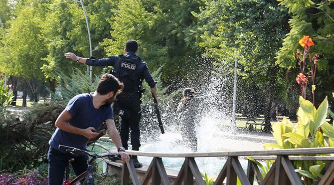 Antalya'da Akdeniz Üniversitesi'nde YÖK'ün kuruluş yıldönümünü protesto eden öğrencilerden 9'u gözaltına alındı. Polisten kaçmak için süs havuzuna giren bir kız öğrenci de gözaltına alınmaktan kurtulamadı.