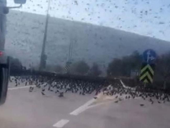 Sığırcıkların korna sesiyle havalanması üzerine kamyon yoluna devam ederken, tüm bu anlar yayındaki otomobilin sürücüsü Burak Kurnaz tarafından saniye saniye görüntülendi. Sığırcıklar ise, gökyüzündeki danslarına devam etti.