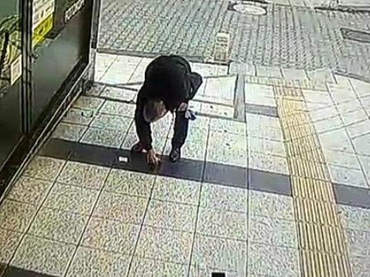Vatandaş düşen paralarından habersiz yoluna devam etti. Bu sırada yoldan geçen bir şahıs, yoldaki paraları görüp toplamaya başladı. Bir ara ayağı takılan şahıs, tekrar kalkarak paraları rahat bir şekilde toplayıp gitti. (İHA)