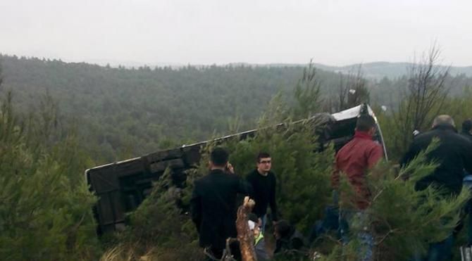 DENİZLİ'nin Honaz İlçesi'nde, kar yağışı nedeniyle buzlanan yolda yolcu midibüsü devrildi, 1'i ağır, 16 kişi yaralandı.