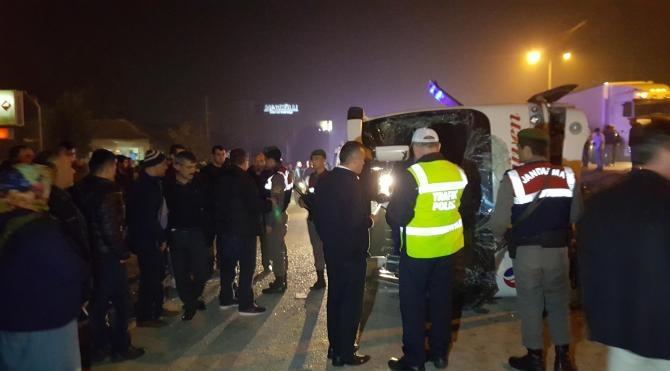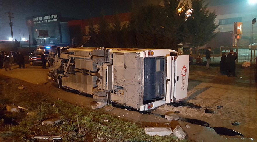 Yan yatan midibüste yaralanan 9 yolcu olay yerine gelen ambulanslarla kaldırıldıkları hastanelerde tedavi altına alındılar. Araç sürücüsü Eren Kurt jandarma tarafından gözaltına alındı.