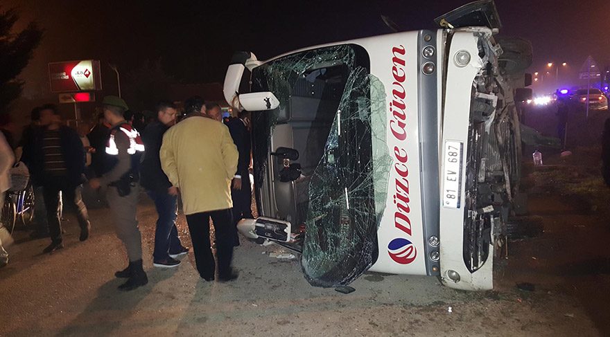 Kaza, akşam saatlerinde D-100 Karayolu Melen Tesisleri mevkiinde meydana geldi. Düzce istikametinden Gebze yönüne giden Eren Kurt idaresindeki 81 EV 687 plakalı 27 yolcunun bulunduğu midibüsün direksiyonu iddiaya göre seyir halindeyken elektronik sisteminden kaynaklı bir arıza nedeniyle kilitlendi. Sürücüsünün direksiyonunu kontrol edemediği midibüs yoldan çıkarak devrildi.