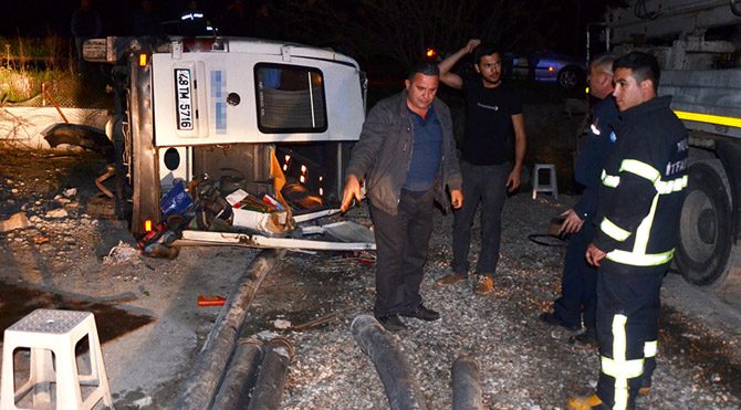 FOTO: DHAKaza, bugün akşam saatlerinde Sarıçay Köprüsü yakınlarında meydana geldi. Milas'tan Selimiye yönüne giden Abdullah Kocabıyık yönetimindeki 48 TM 5716 plakalı yolcu minibüsü, yağmur nedeniyle kayganlaşan yolda kontrolden çıktı. Savrulan minibüs şarampole devrildi. Kazada sürücü Abdullah Kocabıyık ile araçta yolcu olarak bulunan Yakup Abdullah Yalçın (50), Mehmet İhsan Koyuncu (31), Semra Çalışkan (45), Soner Zincir (28), Besalat Ünlü (79), Mehmet Bölükbaş (47), Naz Kaya (6), Dilek Ceylan (24), Mehmet Koray Dağıtmaz (30), Özlem Kaya (33), Hülya Gürler (42) Mehmet Doman (63) ile Fatma Aydın (18) yaralandı.