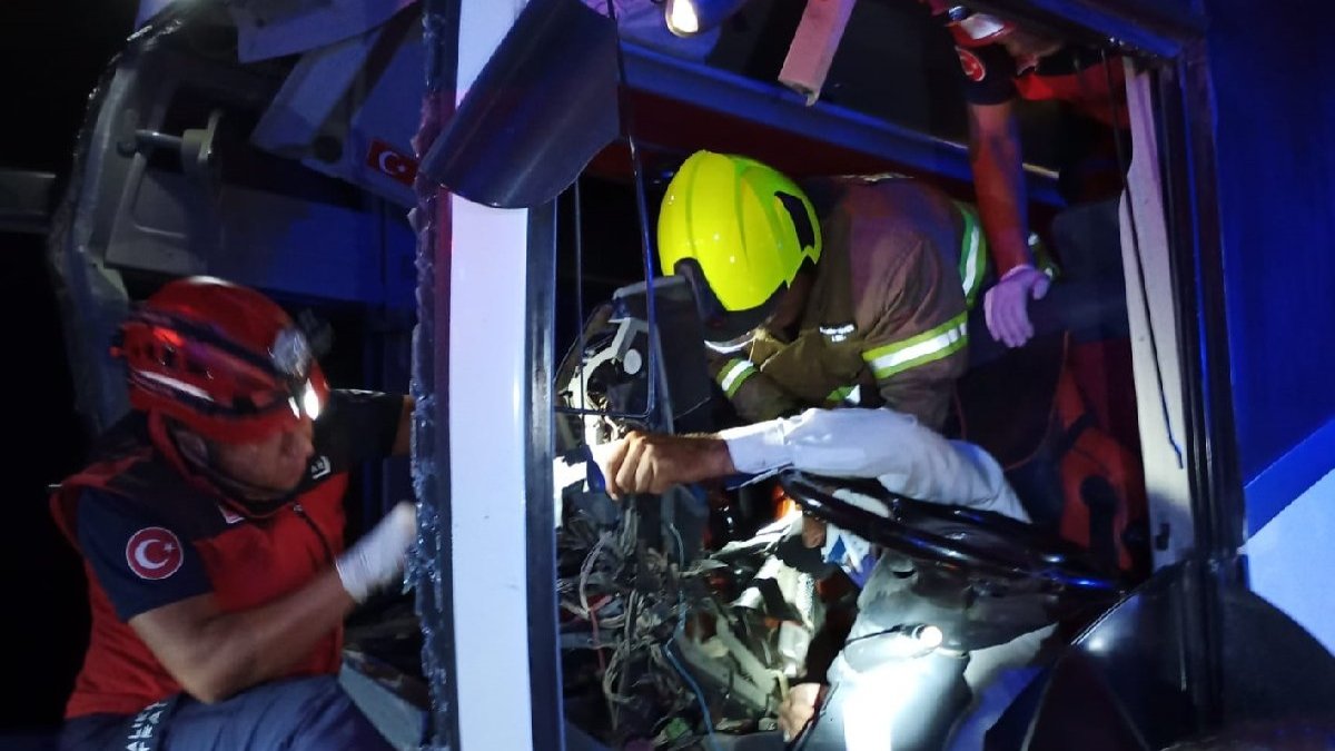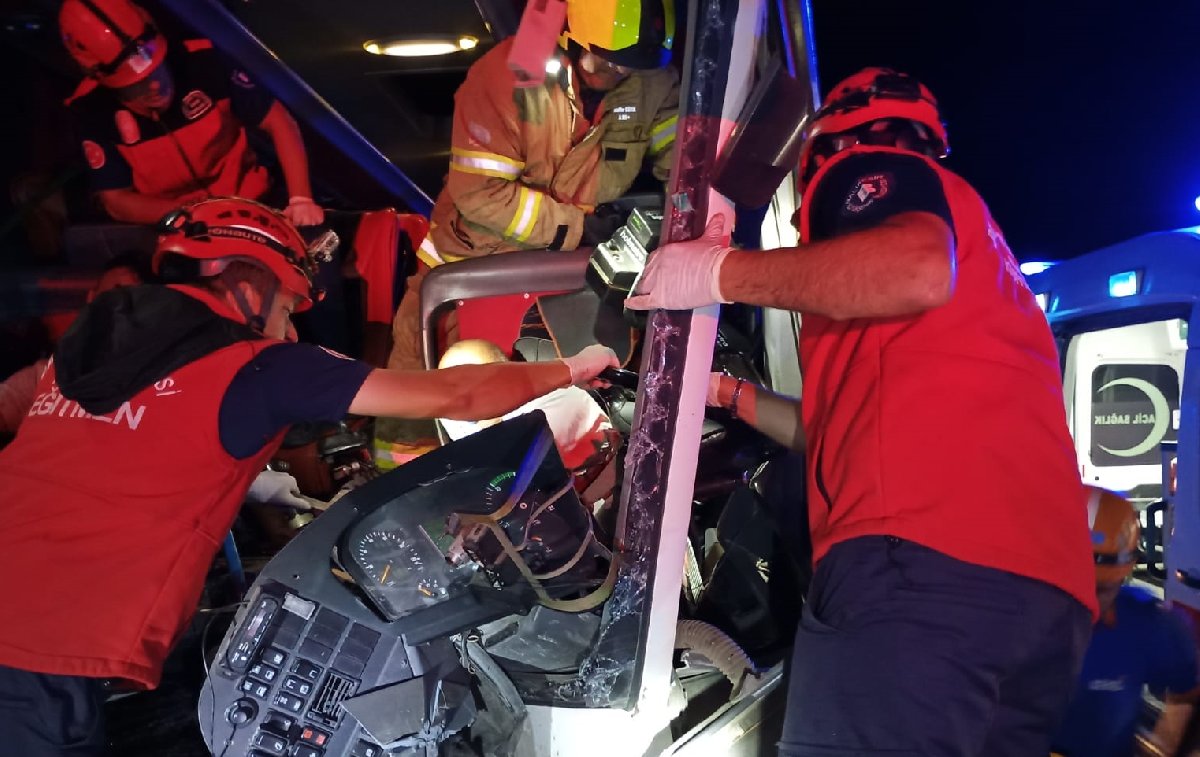 Sürücüler ile otobüsteki muavin, yedek şoför ve 40 yolcunun yaralandığı kaza yerine 112 Acil Sağlık, polis ve jandarma ekipleri sevk edildi.